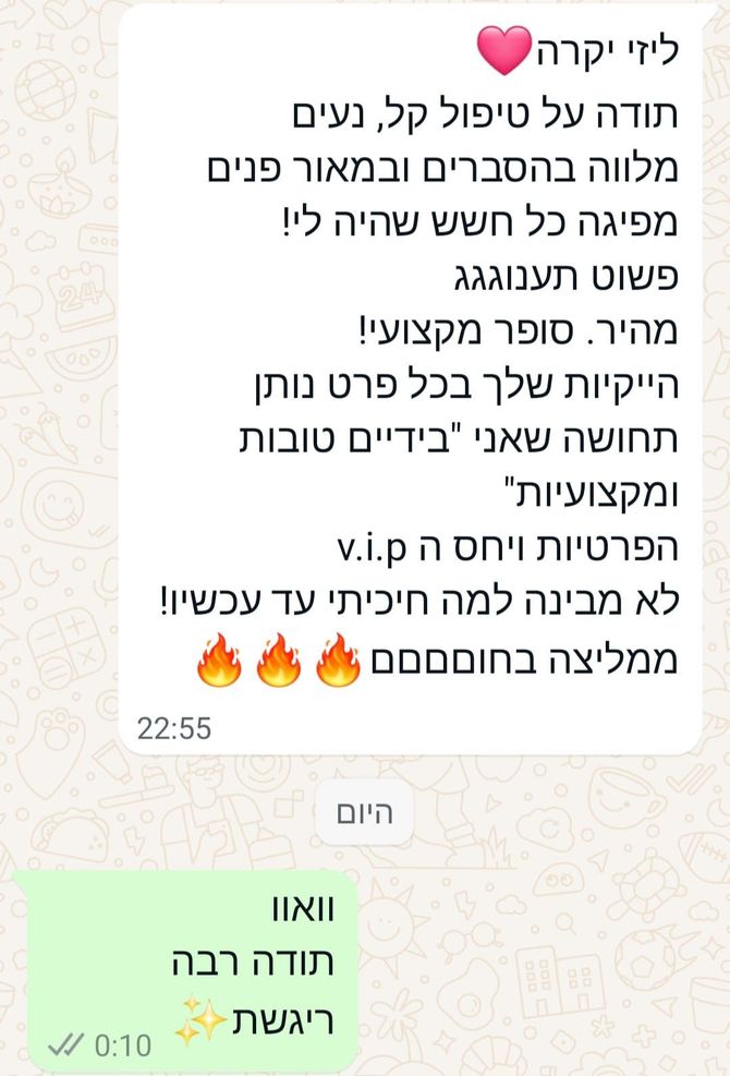 *אנו מקפידים על שמירת צניעות מלאה במהלך כל שלבי הטיפול, חדר פרטי ללא ממתינות ומטפלת יחידה ולא מתחלפת.